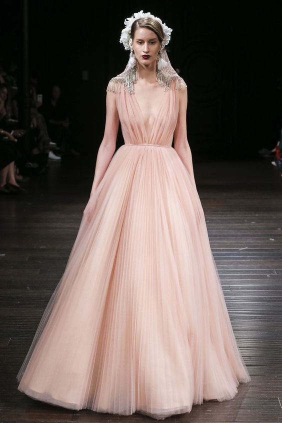Στις πασαρέλες έκλεψαν την παράσταση τα νυφικά με βαθύ ντεκολτέ, είναι τολμηρά και τονίζουν πολύ όμορφο μία νύφη με ωραίο κορμό.