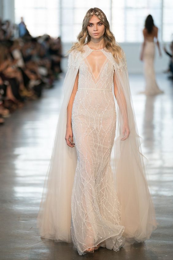 Τα νυφικά φέτος συνοδεύονται από εντυπωσιακές κάπες. Είδαμε κάπες κυρίως σε διαφάνεια, η οποία αγκαλιάζει του ώμους ή εναλλακτικά εντυπωσιακές κάπες που ξεκινούν από τους ώμους και φτάνουν μέχρι κάτω. Οι νύφες της άνοιξης και του ερχόμενου χειμώνα έχουν τη δυνατότητα να περιορίσουν ο κρύο της εποχής.